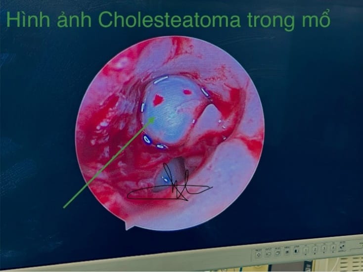 Hình ảnh nội soi tai khối Cholesteatoma.