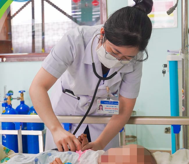 Sau phẫu thuật, bé N.V.P được chuyển về khoa Điều trị tích cực Ngoại Tim mạch để thở máy, sử dụng thuốc chống đông dự phòng huyết khối, đảm bảo các chức năng sống và kiểm soát nhiễm khuẩn chặt chẽ.