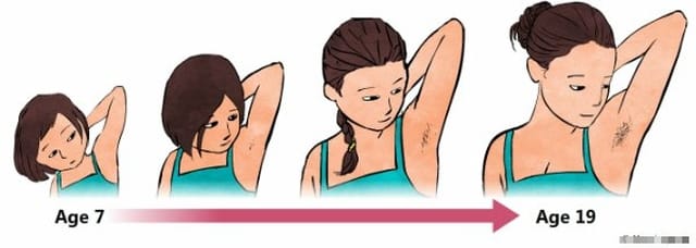 - Một trong những dấu hiệu cũng rất dễ nhận ra là lông mu – phần lông trên môi âm đạo cũng bắt đầu mọc lên. Vùng tử cung cũng phát triển lớn hơn.
