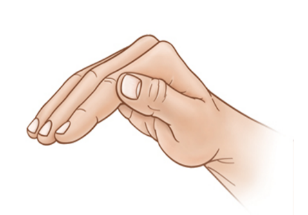 Bước 1: Gập bàn tay của bạn ở chỗ cổ tay rồi khum bàn tay lại. Giữ cho ngón cái ép vào ngón trỏ.
